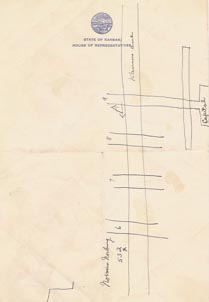 This sheet of paper is from the House of Representatives in Topeka Kansas. I spent two weeks there living with The Norbergs and working as a page in the House of Reprsentatices. Actually I was the Page for the Speaker of the House. This is a map of how to get from the