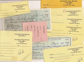 One day M decided that she was going to go teach on the Navajo Indian Reservation in New Mexico. I was working for Flynn Plumbing, sweating the copper for the second set of apartments that Dale Hoag was building. She took the red truck, packed some clothes and drove to Gallup where she interviewed for a job. She taught typical European art the first semester and then found some rug looms that were used in 1940 so she got permission to switch to teaching Navajo Weaving. Later I joined her out there. I ended up going to Flagstaff to school. We would take her students to the Crown Point Rug Auction. We ended up buying several Navajo Rugs as the receipts above show.
