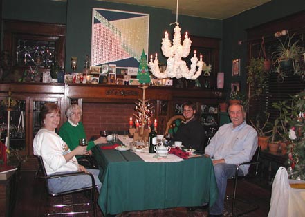 One of the first Christmas"s we celebrated in the big house was with my mother-in-law and our renter at the time Joey. Joey is an artist with a degree from B Tech the Swede school in Lindsborg. He came to Kansas City and went to work for the KCMO Library system. He was always busy messing with computers. He also designed some crazy animals which were going to be used in an animated movie. |