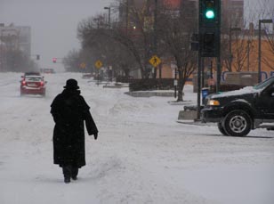 The Swedish early morning Christmas service is celebrated in Kansas City Missouri at the Broadway Church just south of 39th street. It is usually our first stop at 6:00AM on the 25th of December. They always have coffee and homemade pastry after church at 7:00 AM. Usually we leave immediately and drive to Lindsborg for Kalas at my sisters. This year 2009 was the first time in over a hundred years that the service was canceled. They still had coffee and pastry for those who showed up anyway. There were about 16 people who showed up and since the road to Lindsborg was pretty bad we stayed for coffee. Met some real nice people. This is an infamous Cederburg walking back to the car in the Walgrens Drug Store parking lot a block away. |