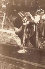 If you go north one block of Fagerberg's store, (on the way to where the old school building sat) there used to be a horse trough on the right hand side. To the left is a photo of me drinking from the pipe that had water continously running into the horse watering trough. The water was well known to horse breeders and old men it was laced with some natural aphrodisiac. A lot of fast horses and big families in St George Kansas.